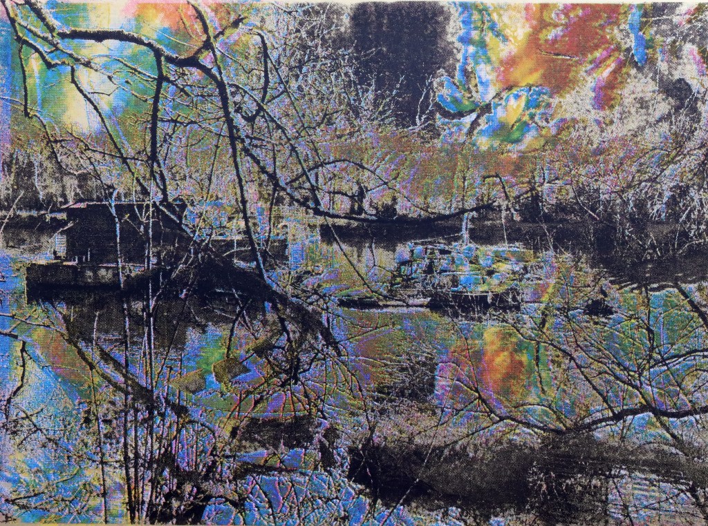 Another print based on the Thames, this time based on photos taken on the riverside at Putney. This version is printed on silver paper.